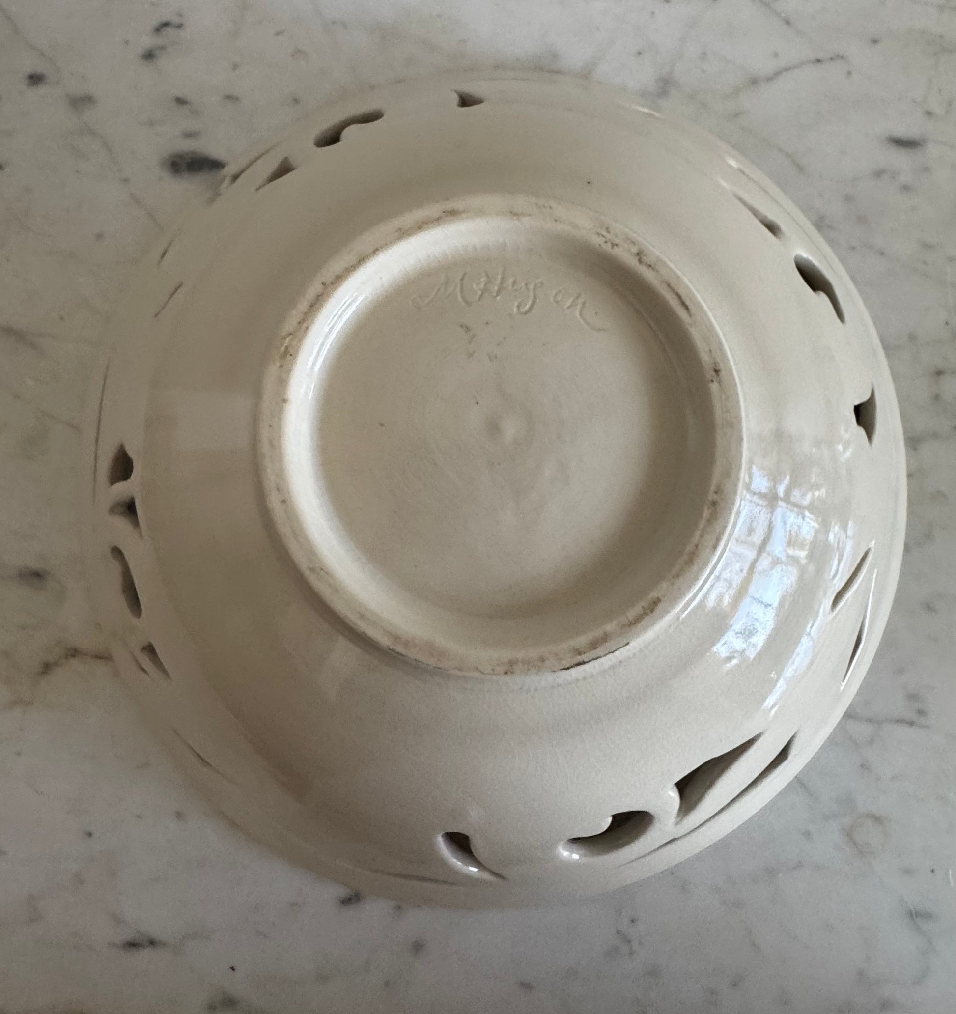 Beautiful ivory ceramic ajoure pierced decorative bowl by Maxine Hugon