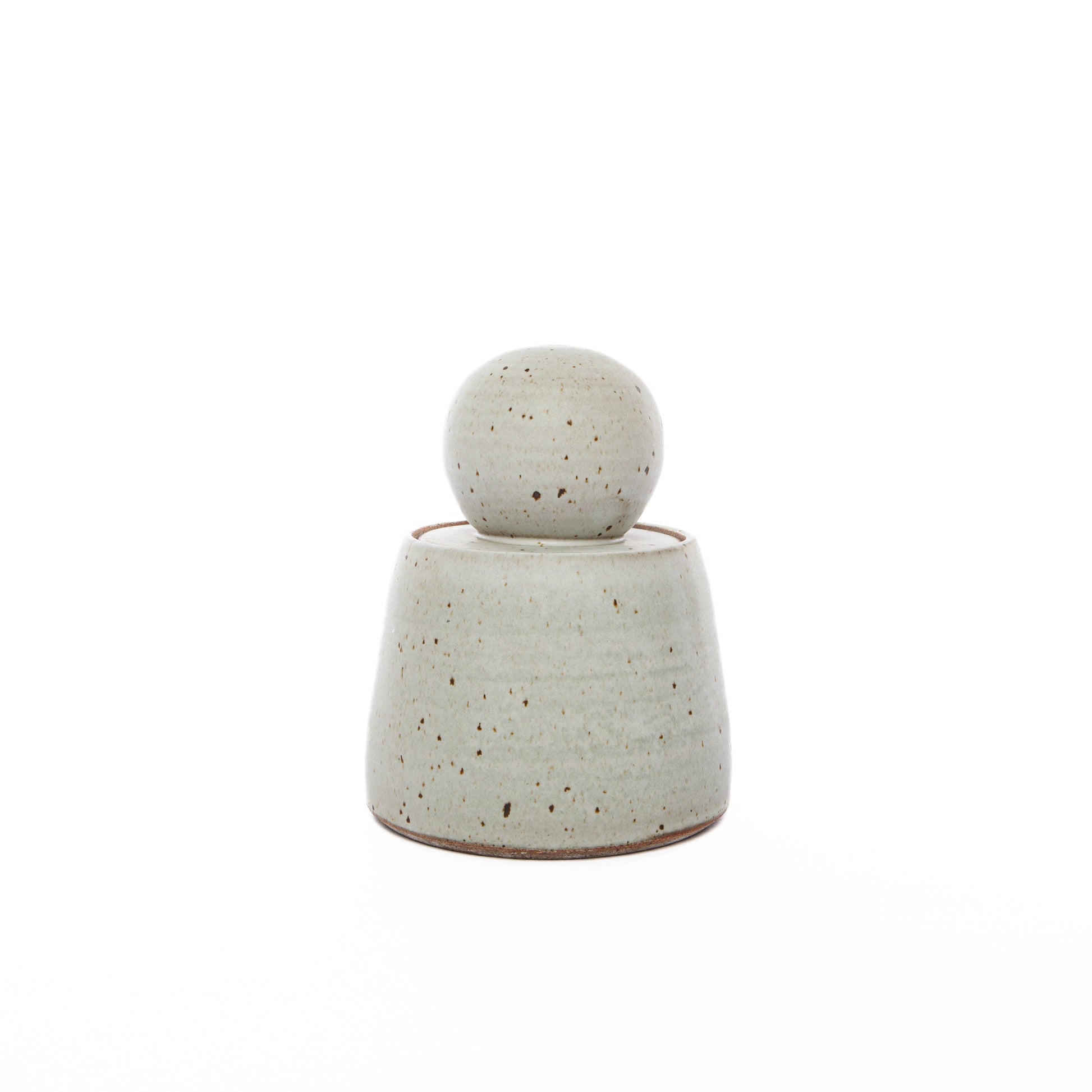 Our hand thrown stoneware jars are accented with large chunky knobs and finished with a matte glaze in varying shades of white and cream.